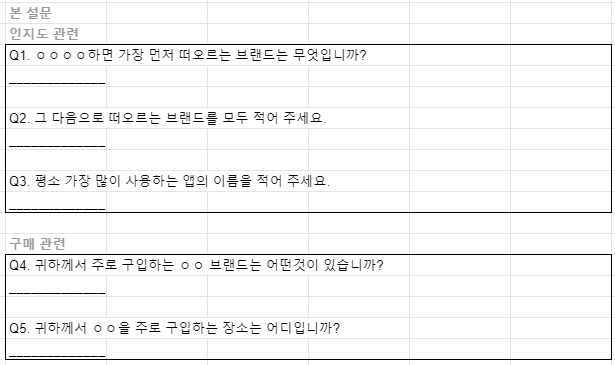 ¹ 예) 인지도를 물을 때 브랜드를 먼저 노출해 놓고 질문하면 안된다.