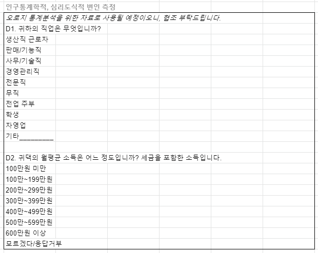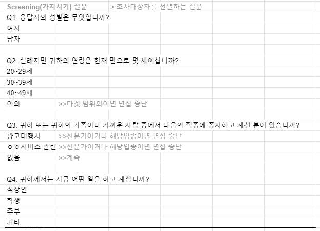 설문지의 내용을 구체적으로 어떻게 채워나갈것인지