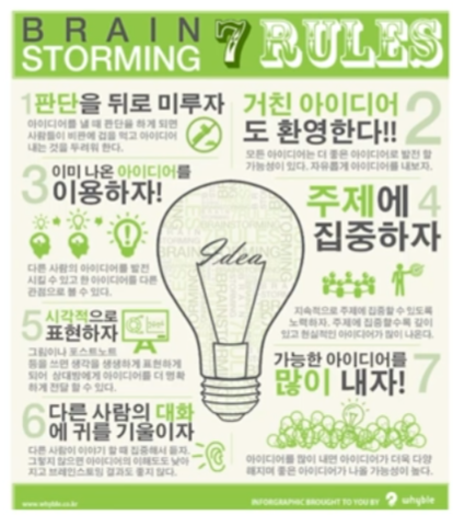 : 일정한 테마에 대해 무비판적 시각에서 자유롭게 아이디어를 찾아내는 발상법